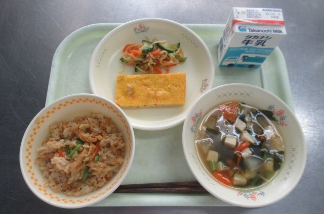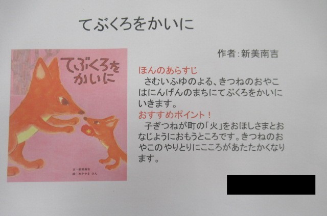 「読書の秋」です。今月は、絵本とコラボした給食を行います。今日は、「てぶくろをかいに」にちなんで、きつねの大好物と言われている油揚げがたっぷり入った、「こぎつねごはん」にしました。給食をきっかけに、本に親しんでもらえたらと思います。