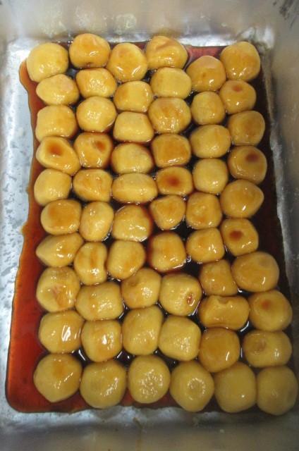 今日は、「十五夜」です。十五夜は、農作物の収穫を祝う行事で、おだんごや豆、いも、ススキなどをお供えします。今日は、白玉粉、上新粉、豆腐、かぼちゃで作ったおだんごを作り、みたらしのタレをかけました。よくかんで、味わっていただきましょう。