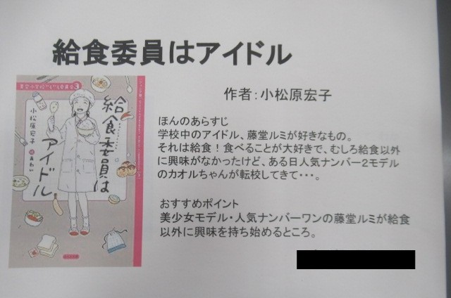 主人公が人気ナンバーワンのアイドルで、食べることが大好きな給食委員だそうです。とても興味がわいてきますね!!ぜひ読んでみてください。