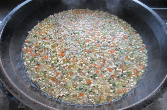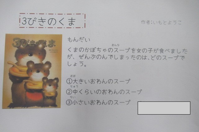 今日は、「3びきのくま」の絵本にちなんで、「豆腐と青梗菜のスープ」にしました。心優しい3びきのくまと、女の子が出てくるお話です。急に気温が下がってきました。温かいスープを食べて、体調を整えましょう。