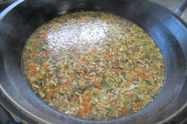 今日は、「きのこレストラン」の絵本にちなんで、「きのこ汁」にしました。この絵本を読むと、きのこは、土、木、虫とみんなでつながって生きていることがわかります。今日の汁には、しめじ、生しいたけ、えのきたけを入れました。