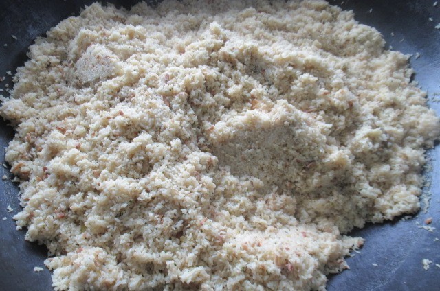「しらす」は、イワシの稚魚のことをいいます。半透明で小さい体ですが、骨や歯を丈夫にするカルシウムが多く含まれています。今日は、にんにく、ねぎ、しょうが、ベーコン、しそ、ごまと一緒に炒めて味付けした具とごはんを一緒に混ぜ合わせて作りました。