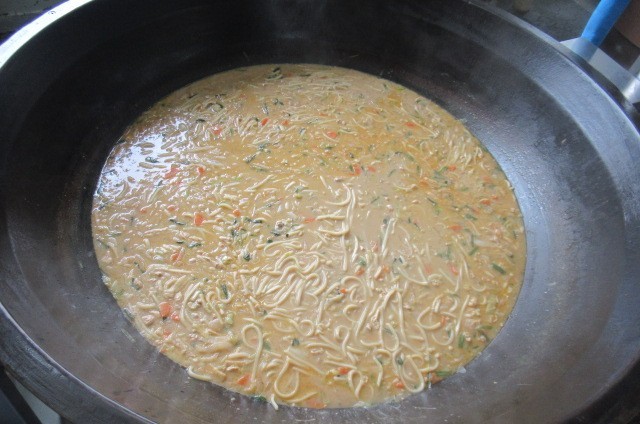「白ごまたんたんうどん」は、中華料理の「担々麺」を給食用にアレンジしたものです。スープは、ねりごまを加えているので、コクと風味を感じることが出来ます。