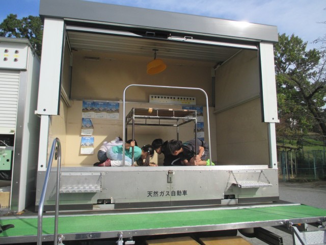 11月4日の5.6時間目に4年生の児童が起震車体験をしました