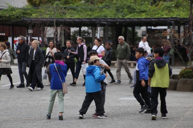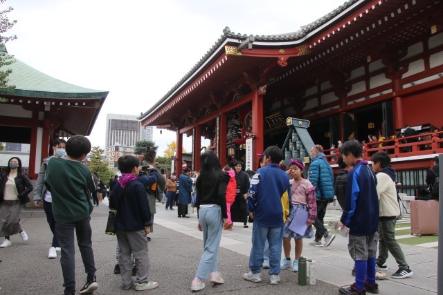 観光客の多さに圧倒されながらも、事前学習で調べた建物を実際に見ることができて感動している様子が見られました。