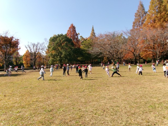 真光寺公園に行ってきました。今回は、秋遊びやおもちゃ作りをしたり、1年生が考えた遊びをみんなでやったりして、楽しい時間を過ごすことができました。