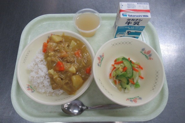 カレーライス 牛乳 キャベツサラダ ピーチゼリー