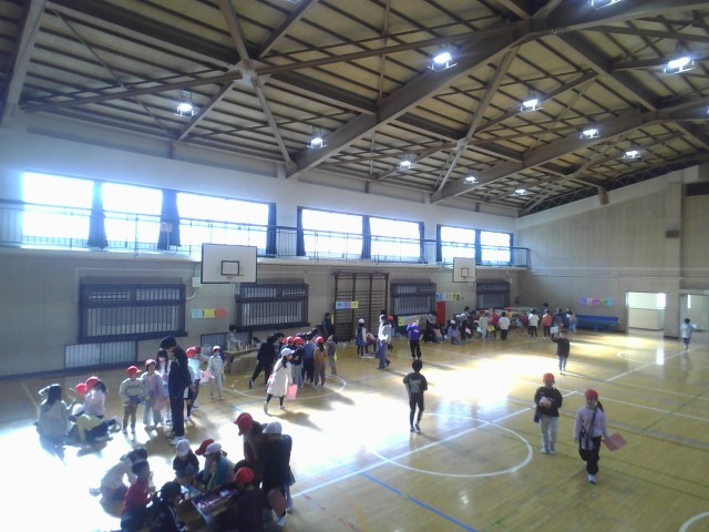 先日、2年生からミニつる四まつりの招待状を受け取り、本日、体育館でミニつる四まつりに参加しました。2年生は、12箇所もお店を開き、作ったおもちゃで1年生を楽しませてくれました。とても楽しいすてきな時間を過ごすことができました。