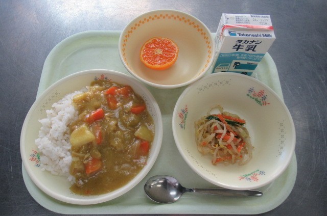 チキンカレーライス 牛乳 ごまダレサラダ くだもの(みかん)