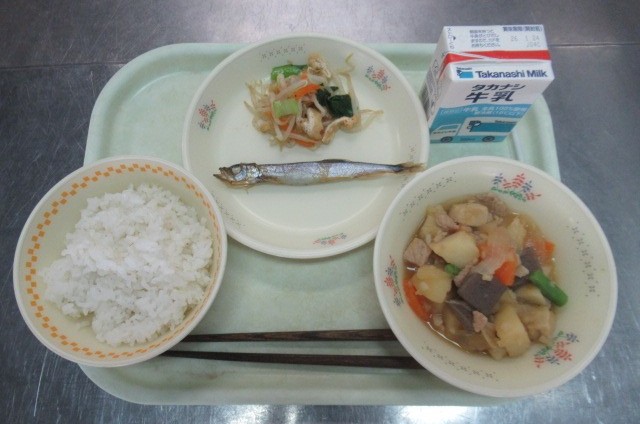 給食では、丈夫な骨や歯をつくるために、カルシウムを効率的に摂取できる牛乳を毎日取り入れています。また、牛乳以外にも、カルシウムが摂れるように工夫しています。今日は、丸ごと食べられるししゃも、肉じゃがうま煮には凍り豆腐、お浸しには小松菜など、カルシウムが多い食材を取り入れました。
