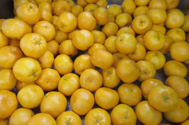 今日のくだものは、1月から2月にかけて旬の「ぽんかん」です。ふつうのみかんよりも甘みが強く、いい香りがするのが特徴です。かぜを予防するビタミンCもたっぷり入っているので、味わって食べてください。