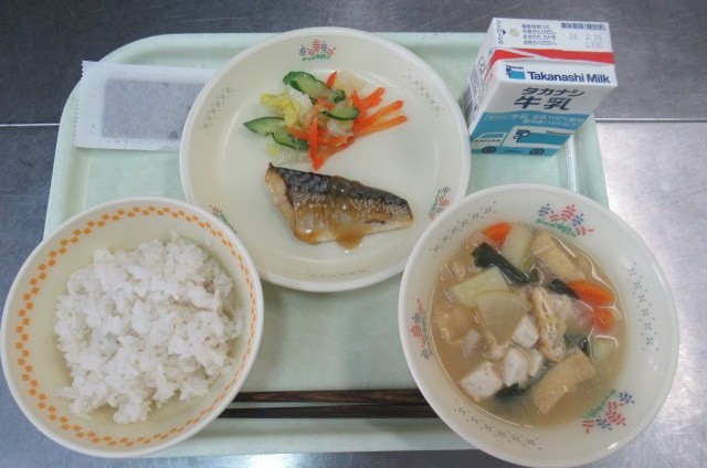 ごはん 味付けのり 牛乳 さばのレモン焼き 白菜サラダ 味噌汁
