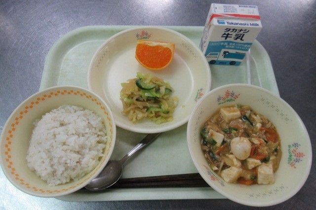 ごはん 牛乳 キムチ豆腐 やみつき野菜 くだもの(せとか)