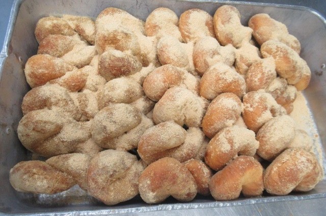 子供たちに行ったリクエスト給食のアンケートで、見事第1位になったのは、「きな粉揚げパン」です。今日も、調理員さんが、油でパンを1つ1つ丁寧に揚げた後、特製のきな粉をたっぷりまぶしてくれました。外はカリッと、中はもっちりとした食感を味わって食べてください。