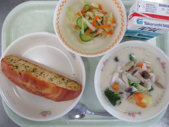 牛乳ガーリックトーストフレンチサラダ秋のクリームシチュー