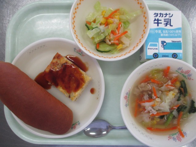 牛乳黒砂糖パンポテトオムレツフレンチサラダABCスープ
