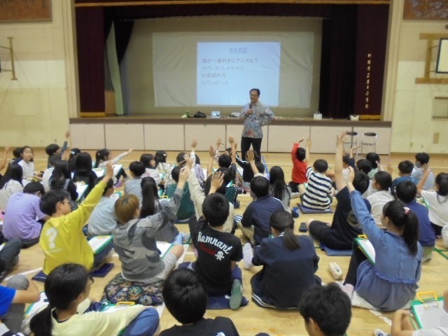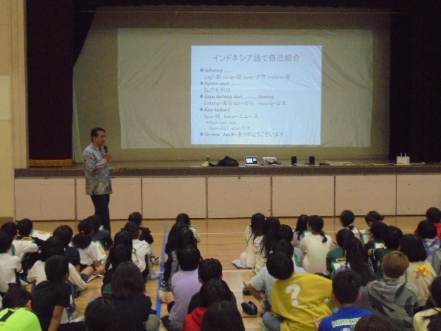 子どもたちはインドネシアの言葉や文化などに驚きながら、メモを取っていました。