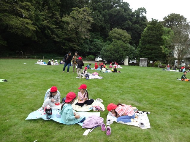 薬師池公園の芝生広場でお弁当を食べました。おなかペコペコだった子どもたちは、お弁当を見せ合いながら楽しく食べていました。「来たときよりもきれいに」と伝えると、食べ終わったあとにゴミ拾いをしていた子が何人もいました。お弁当を含め、持ち物のご準備、ありがとうございました。