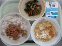 牛乳わかめごはん擬製豆腐ほうれん草と白菜のおひたしなめこ汁
