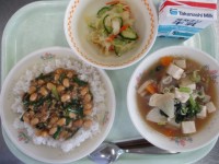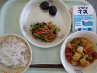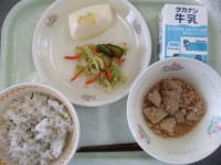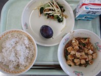 牛乳麦ご飯ポテト入りナムルマーボー豆腐プルーン