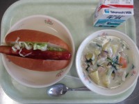 牛乳黒砂糖パンポテトオムレツフレンチサラダABCスープ