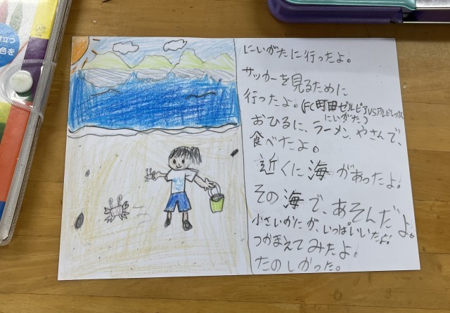 夏休みの思い出 公開日 2024/09/03 更新日 2024/09/03 お知らせ 夏休みの思い出を絵手紙のようにしていました「校長先生〜 見て見て」とたくさんの子が声をかけてくれましたそのなかからいくつか… 校長室より