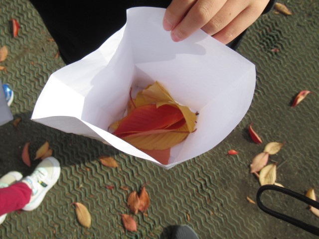 見つけた葉っぱで図工でどんな作品にうまれかわるのか楽しみです。