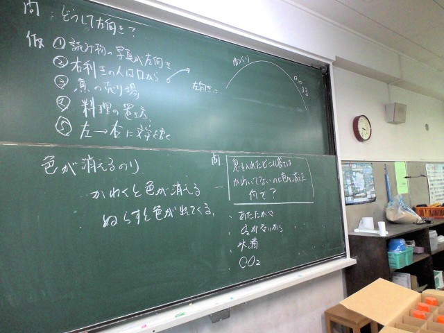 1)めだかを「どの向き」で描くかの問い対して、左向きにした仮説を立て、検証しました。