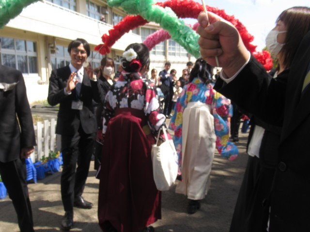 最後は多くの先生、保護者の方に見送られ、小学校生活最後の下校・・・。