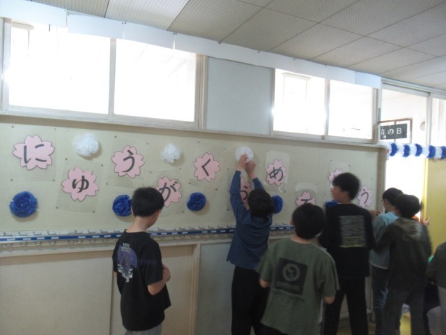 今日の入学式の準備のために、昨日は教室の飾り付けや