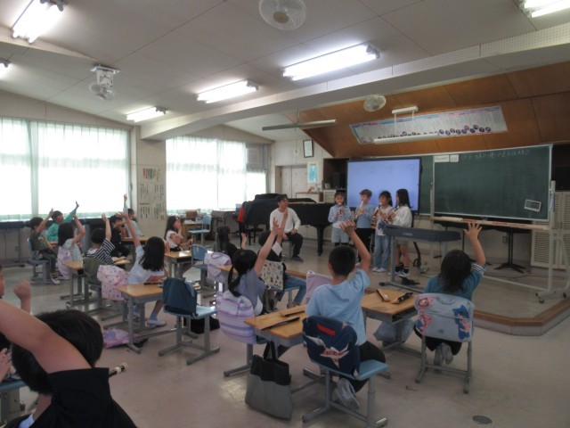 指の押さえ方をみんなと確認して音の出し方を学びました。