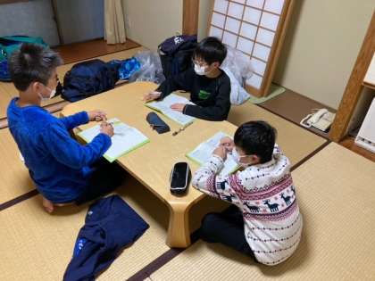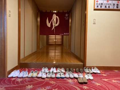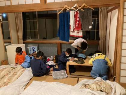 入浴中。上履きも、揃っています。明日の用意もしています。