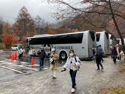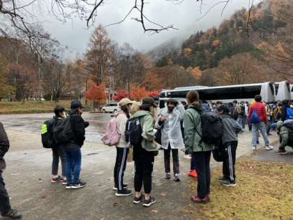 これからハイキングに行きます。小雨が降っています。