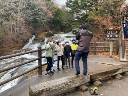 竜頭の滝を見学しました。雨は何とか上がっています。この後、ホテルへ向かいます。