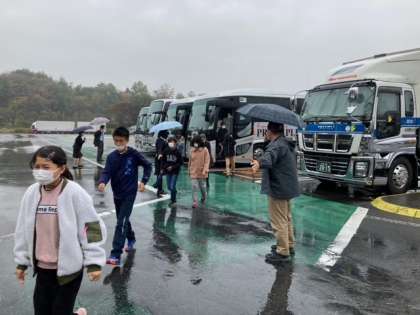 トイレ休憩も終わり、学校に向かいます。16時前ぐらいに到着予定です。