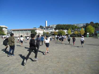 体力づくりの一貫として、休み時間に持久走を行っています。