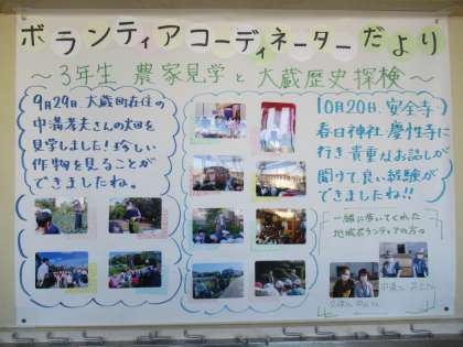 11月17日(水)学校の様子 公開日 2021/11/17 更新日 2021/11/17 お知らせ 廊下の掲示物です。今学期のノートチャンピオンです。 3年生の地域見学の様子をボランティアコーディネーターがまとめてくださっています。 6年生が日光移動教室で作ったふくべ細工です。ニスが塗ってあり光輝いています。