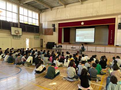 3年生の総合的な学習の時間の一環として「大蔵の歴史」についての学習を行っています。本日は、中溝正治氏(元・鶴川中学校校長)をゲストティーチャーにお迎えし貴重なお話を聞きました。