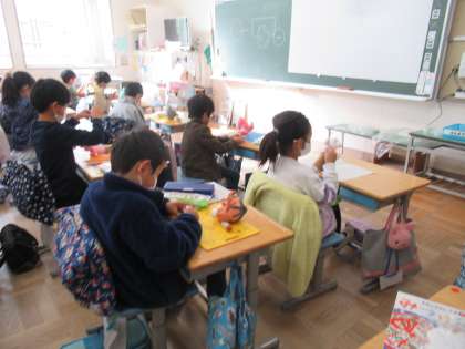 11月18日(木】学校の様子 公開日 2021/11/18 更新日 2021/11/18 お知らせ 3年生の体育の様子です。アルティメットでゲームをしていました。 1年生の国語の様子です。友達へのインタビューの学習をしていました。 2年生の図工の様子です。紙粘土で生き物を作っていました。