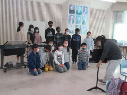 音楽集会をリモートで行いました。音楽室でがっきを演奏し、どの楽器で演奏したのかをあてるゲーム形式で行いました。正解の発表は給食時に行います。