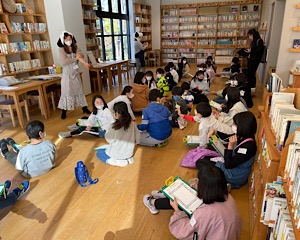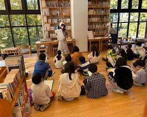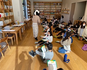 スヌーピーミュージアムに併設されている まちライブラリーで、英語で説明を受けながらスヌーピーのイラストに挑戦!