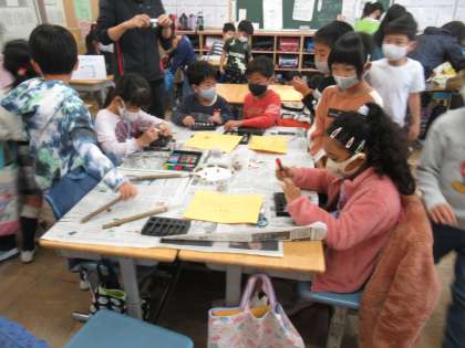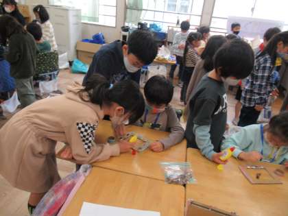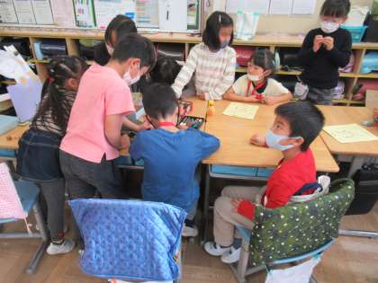 2年生が1年生を遊びに招待しました。2年生が郊外学習で集めてきたどんぐりを使ったおもちゃで遊びました。2年生が1年生に遊び方や作り方を教えている姿、2年生の成長を感じました。