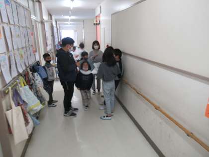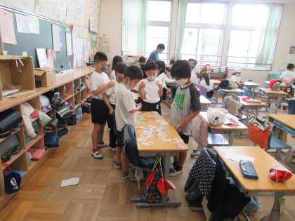 廊下では、5年生が学習の一環で、先生に英語でインタビューをしていました。