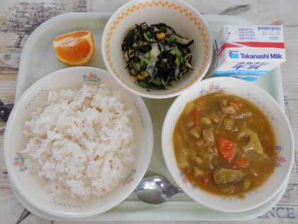 今日の献立は、牛乳 大地の野菜のカレーライス ひじきサラダ