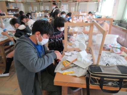 6年生の図工の様子です。宇宙からきた贈り物、どんなものが出来上がるのでしょうか。