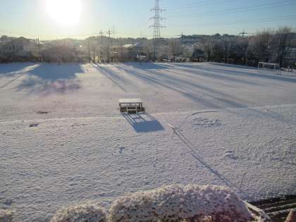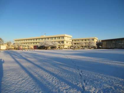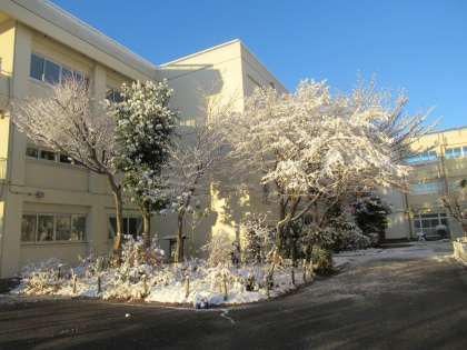 昨日の雪が残り、校庭一面雪に覆われていました。