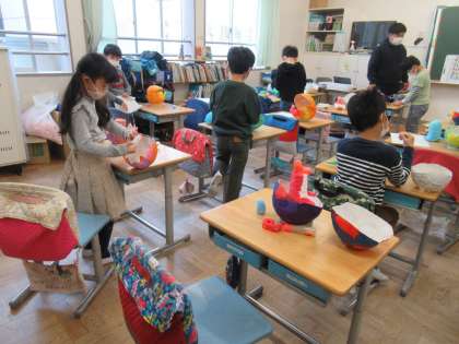 1月28日(金)学校の様子 公開日 2022/01/28 更新日 2022/01/28 お知らせ 2年生の図工の様子です。展覧会で展示する作品の仕上げをしていました。 6年生の図工の様子です。版画を彫っていました。 サポートルームの学習の様子です。先生方がやり方の手本を示していました。