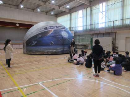 4年生が星の学習を行いました。 プラネタリウムの出前授業です。大蔵小からの夜空を見せていただきました。
