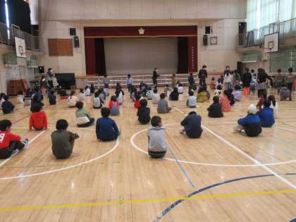 2年生が体育館で「6年生を送る会」の学年練習を行っていました。