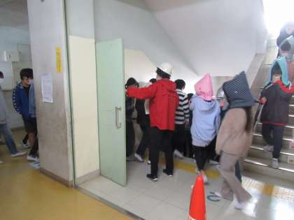 2月22日(火) 公開日 2022/02/22 更新日 2022/02/22 お知らせ 避難訓練を行いました。職員室からの火災で、防火シャッターが降りてくるという設定で行いました。校庭がぬかるんでいたため、昇降口で点呼をとりました。教室へ戻ってから校長先生の話を聞きました。